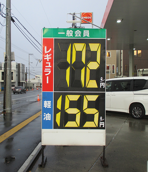 札幌市場で今月第3週早々、販売業者の多くが仕切り価格上昇分の転嫁を含めた値戻しに動き、レギュラーガソリン看板価格はバラツキを残しながらもフル172円、セルフ169円が目立つが、量販各社は150円台後半の看板を掲げたまま。これまでならすぐにも値崩れとなったが、今回は少しばかり状況が違うようだ。マージン縮小への危機感からなのか、旧暫定税率廃止に向けた国の補助増額分の値下げを見据える「元値」づくりなのか。