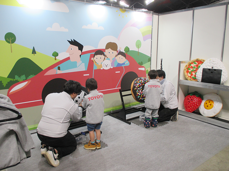 また、100年前の電気自動車をはじめとしたクラシックカーの展示や人気ゲームポケットモンスターに登場するキャラクターを実物大の乗用モビリティとして再現したミライドンとコライドンへの試乗体験、いろいろな形のタイヤを車に取り付けるTOYOTAキッズ体験プログラムなどが大人気。